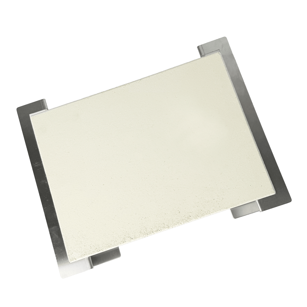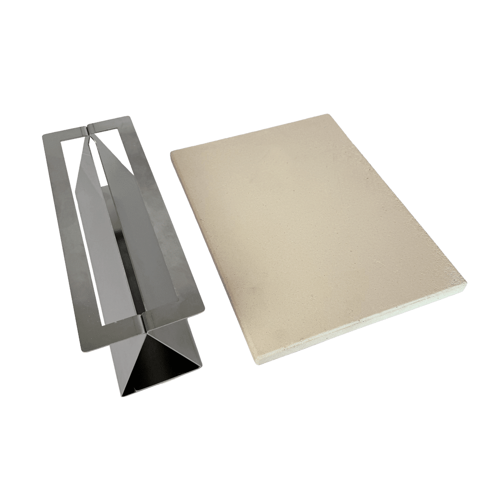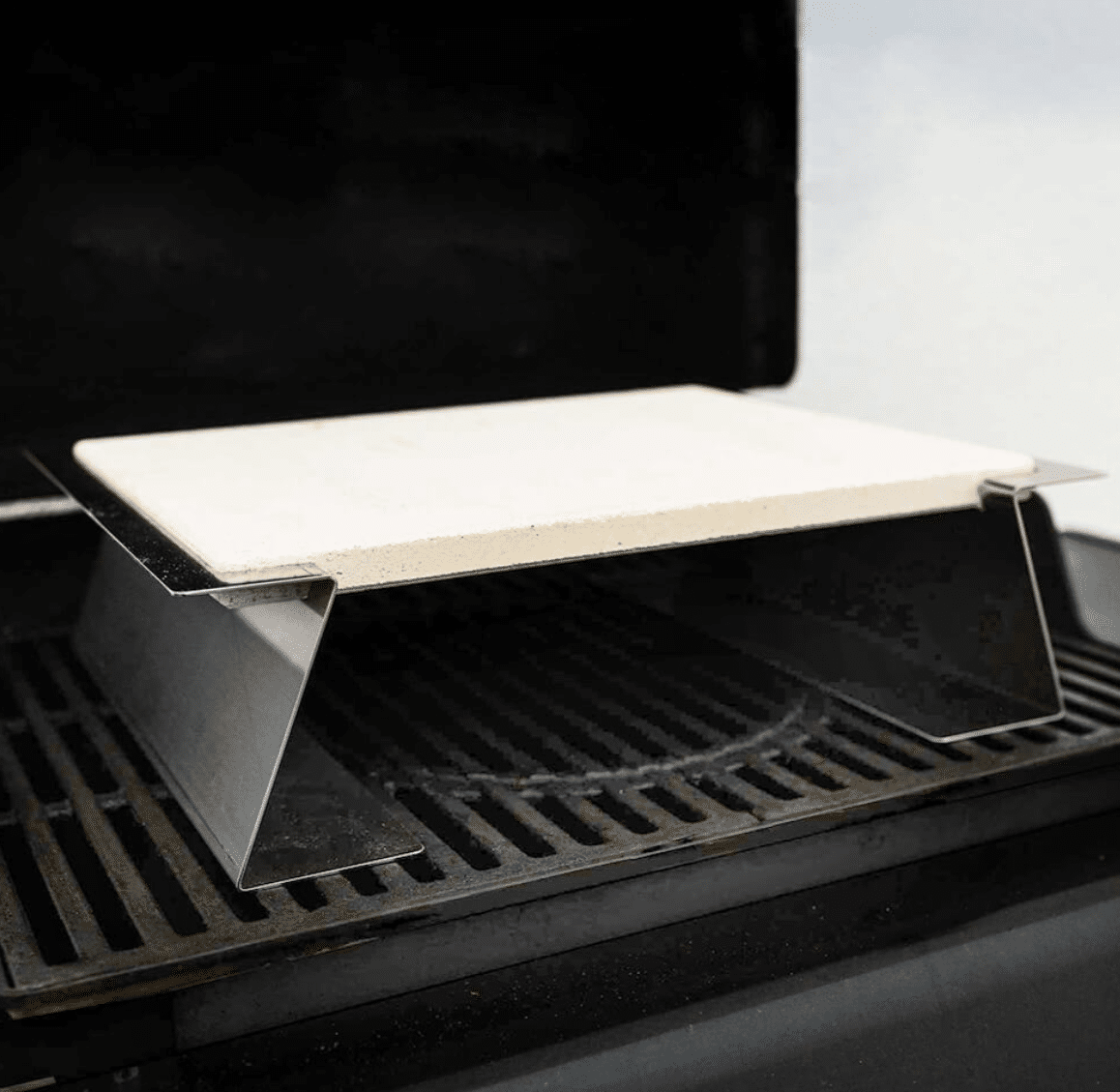 Hochwertiger Pizzastein aus Schamotte für die Zubereitung von Steinofen-Pizza auf dem Gasgrill. Der Stein speichert die Hitze optimal und sorgt für einen knusprigen Boden bei gleichzeitig luftigem Inneren. Die speziell entwickelte Halterung ermöglicht die ideale Positionierung im Gasgrill, wodurch sich die Hitze gleichmäßig verteilt und perfekte Backergebnisse erzielt werden. Ideal für Pizza, Flammkuchen und weitere Teigspezialitäten.