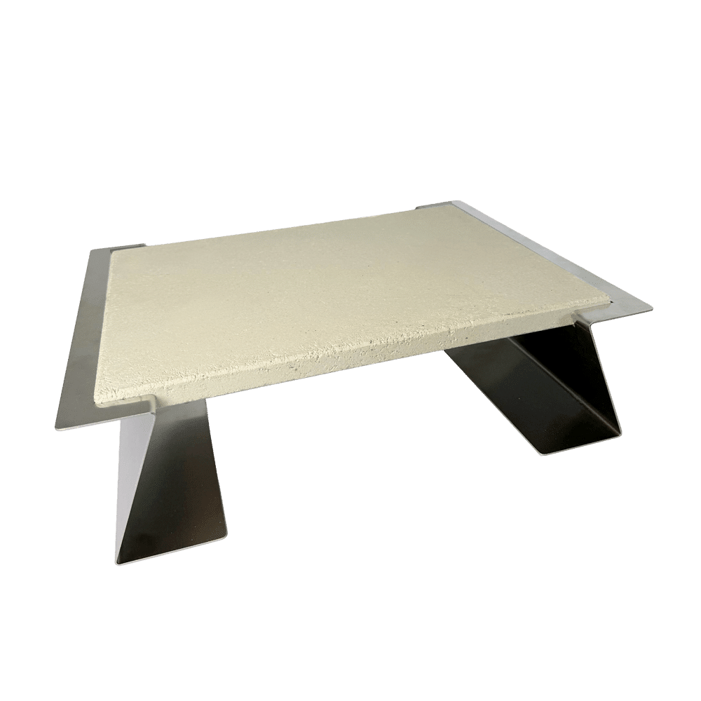 Viele legen ihren Pizzastein direkt auf den Grillrost – das ist der klassische Fehler. Die Hitze konzentriert sich unten, während die Oberhitze zu schwach ist. Das Ergebnis: der Boden wird schnell zu dunkel, während der Belag nicht gleichmäßig gart. Unsere Edelstahl-Halterung für Pizzasteine löst dieses Problem auf einfache, geniale Weise.